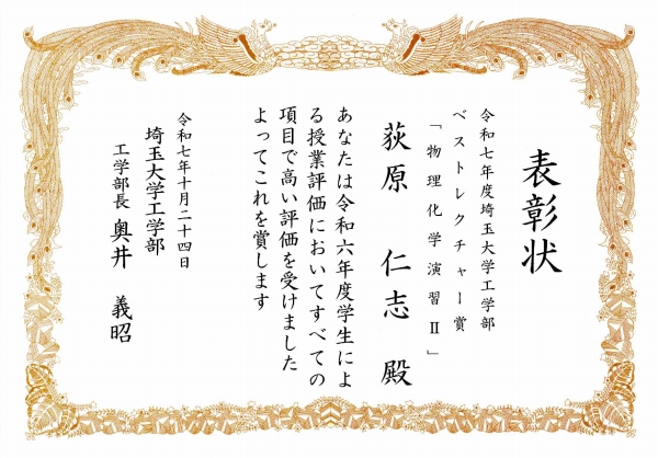 - 令和七年度埼玉大学工学部 ベストレクチャー賞