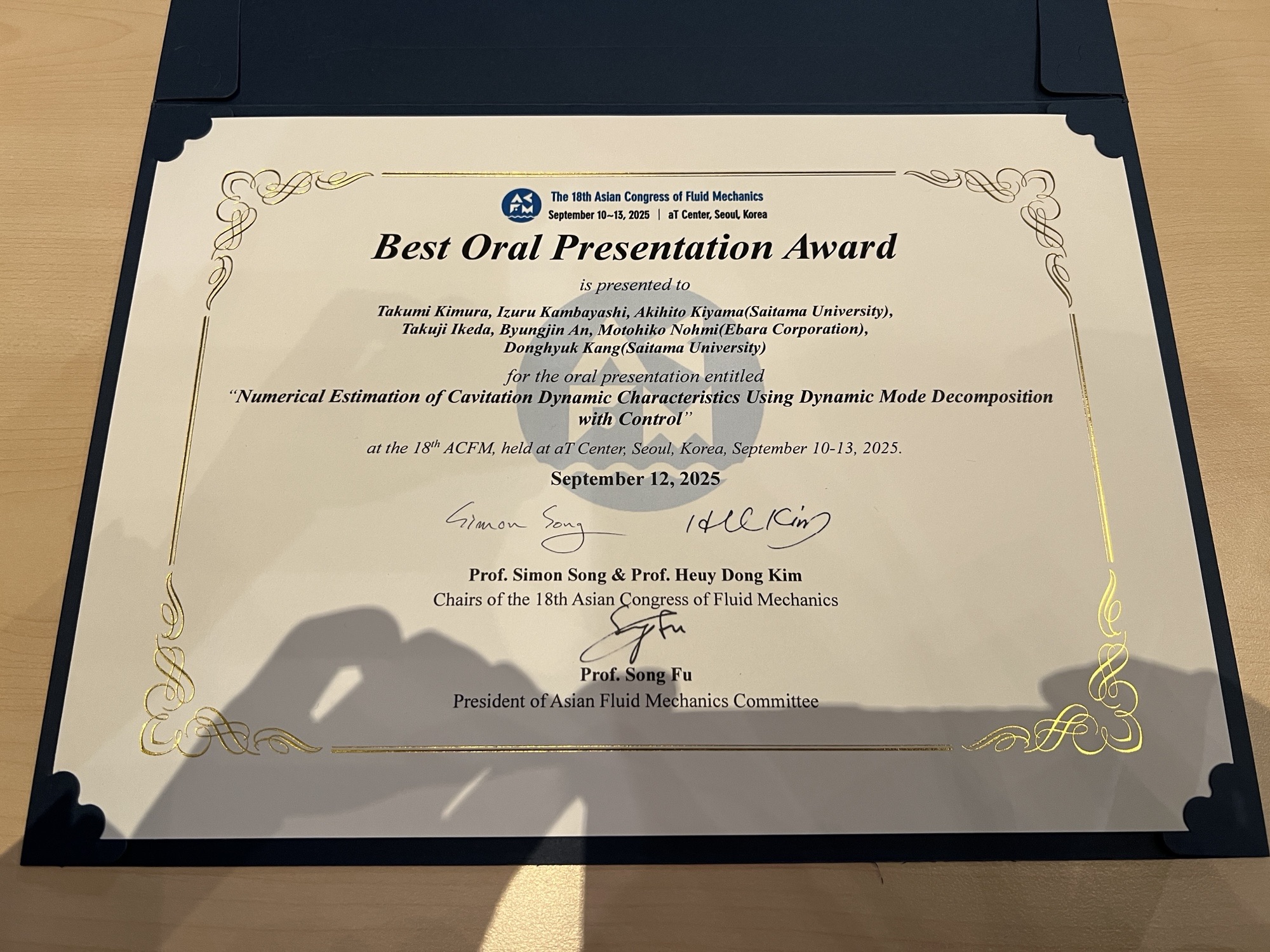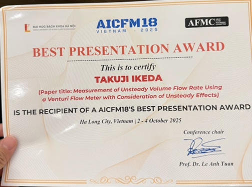 The 18th ASIAN International Conference on Fluid Machinery and received the Best Presentation Award. (AICFM18) 2025-10-03