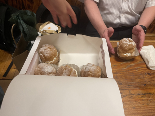 2024年10月 4日 学生諸君が誕生日を祝ってくれました!今年はおいしいシュークリームでした☆